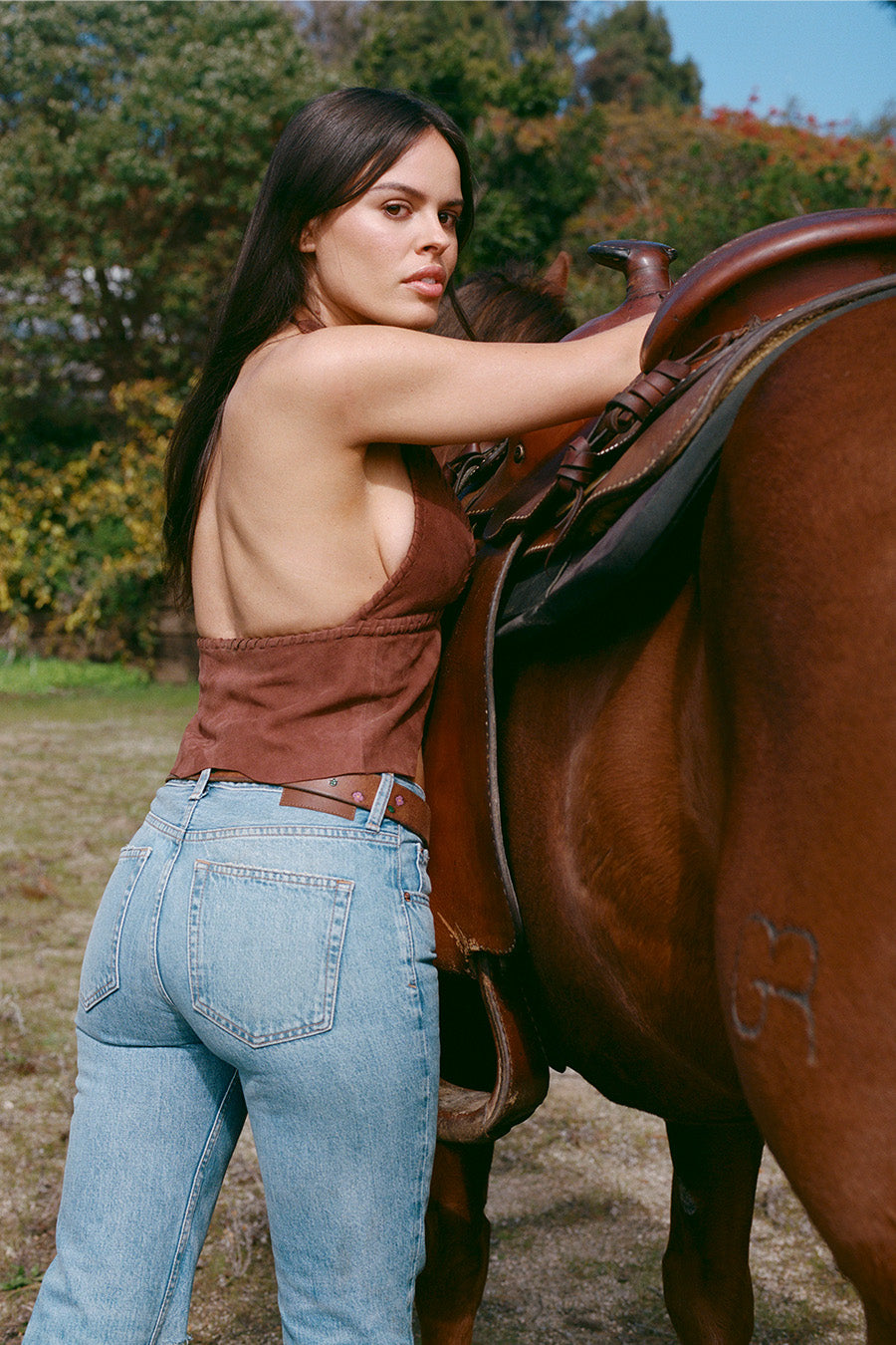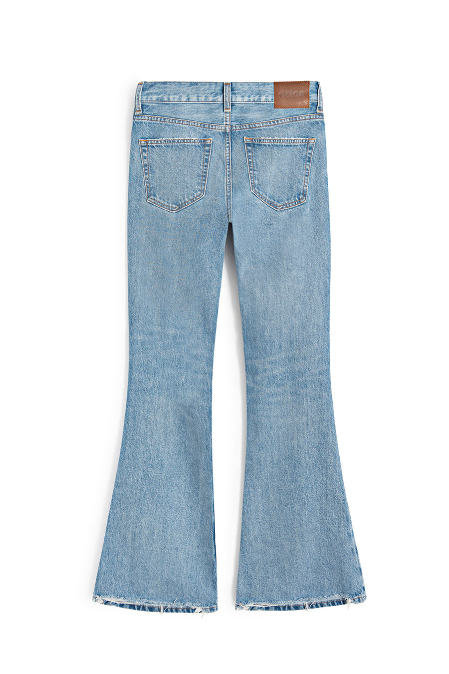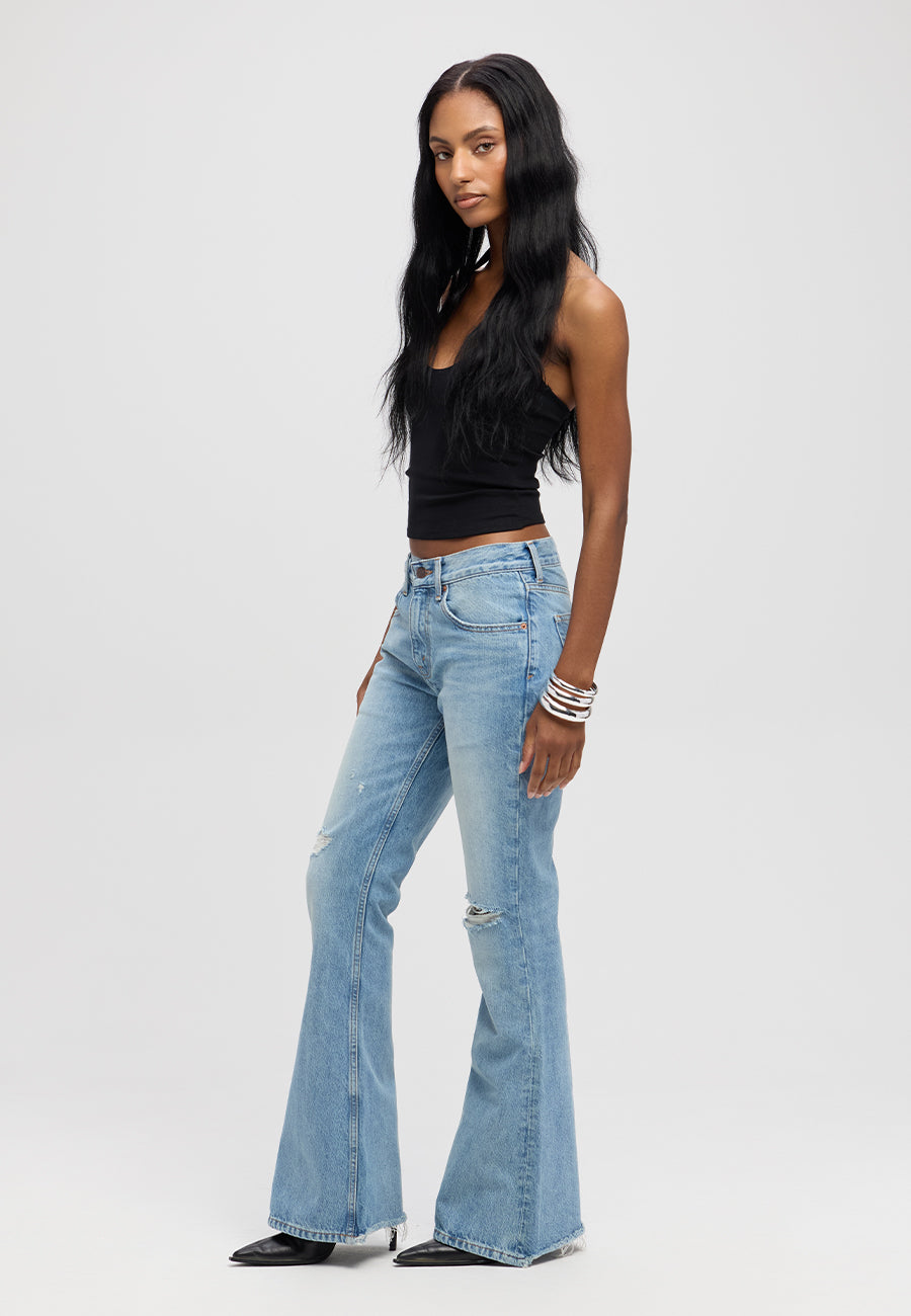 A modern flare with vintage soul. Designed by Atlanta, our new Creative Director, this sculptural silhouette blends the drama of a ’70s leg with the ease of a late-’90s rise. Made with minimal stretch for structure and shape, it hugs in all the right places and softens beautifully over time.