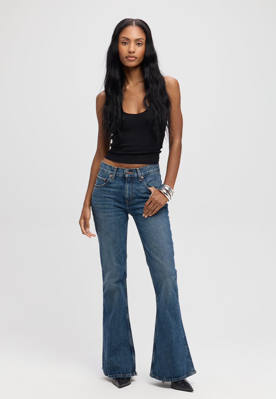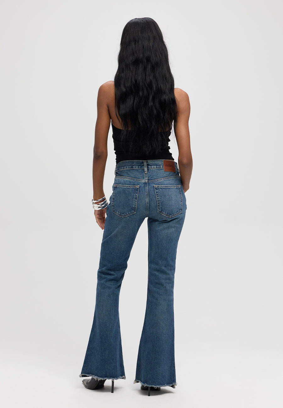 A modern flare with vintage soul. Designed by Atlanta, our new Creative Director, this sculptural silhouette blends the drama of a ’70s leg with the ease of a late-’90s rise. Made with minimal stretch for structure and shape, it hugs in all the right places and softens beautifully over time.