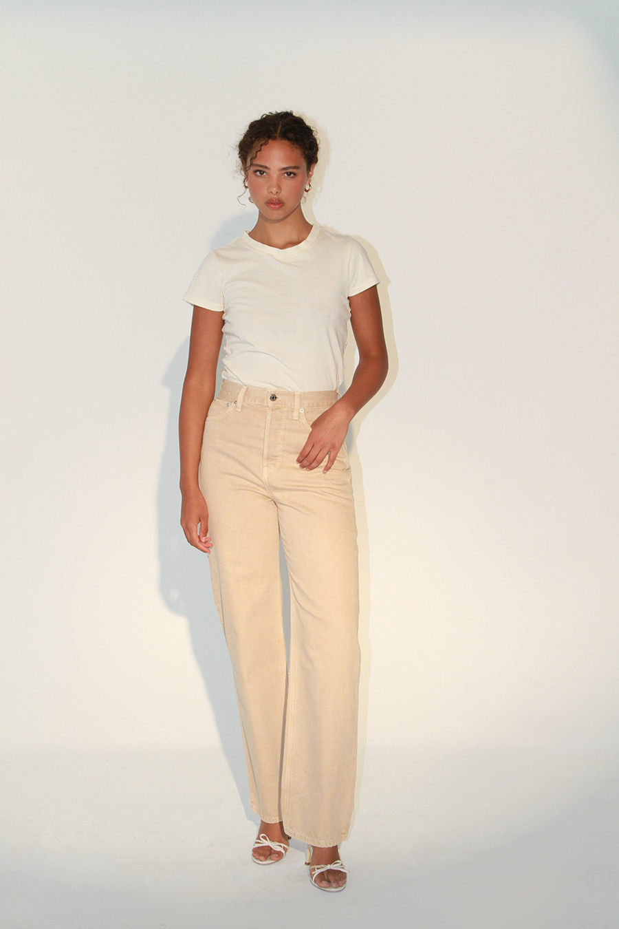 An Ultra high-rise loose fit with a button fly that sits higher on the waist, then relaxed through the hips and loose through the thigh and leg.