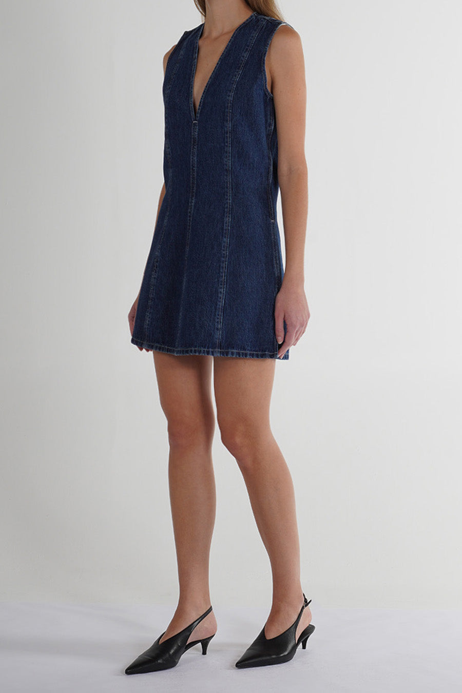 The Laila Mini Dress features a relaxed A-line fit with a deep V-neckline offering a chic and effortless silhouette.