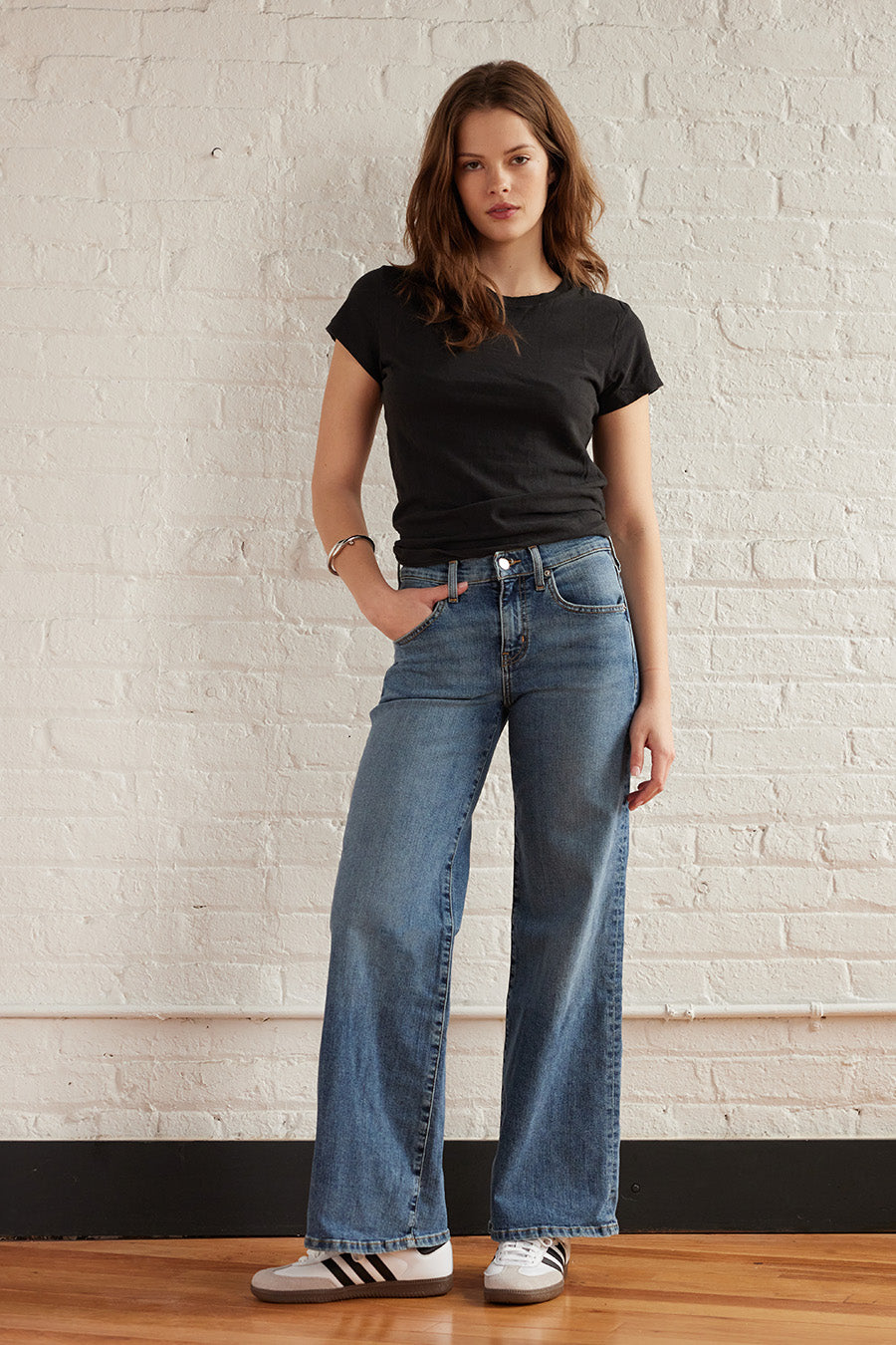 Romi features a lower rise with a softly fitted hip and a chic, dramatic wide leg that creates a cool French girl vibe.