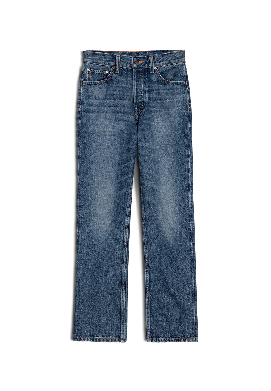 Your everyday slim straight. Sits at the natural waist with a clean fit through the hip and thigh, finishing in a slightly cropped, tapered leg. Polished enough for the office, easy enough for every day. The French-girl jean you’ll keep in rotation.