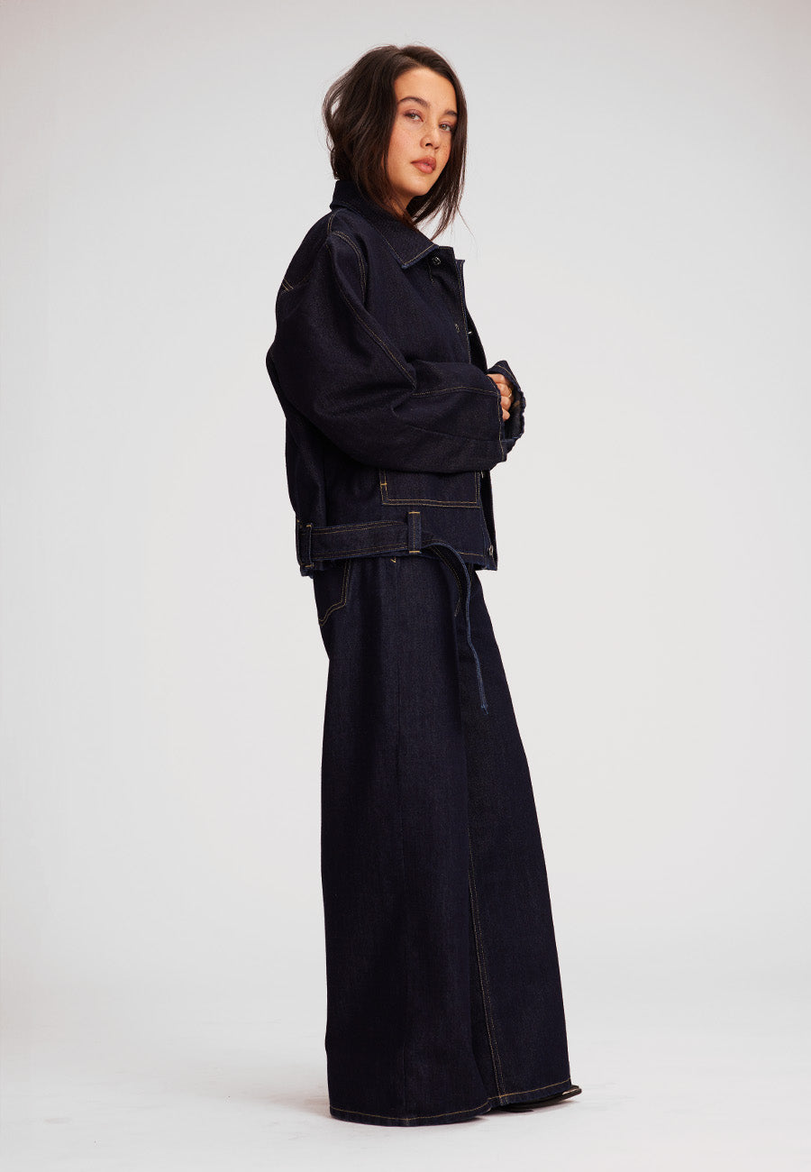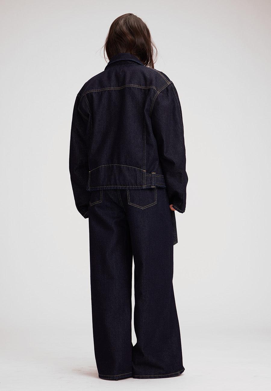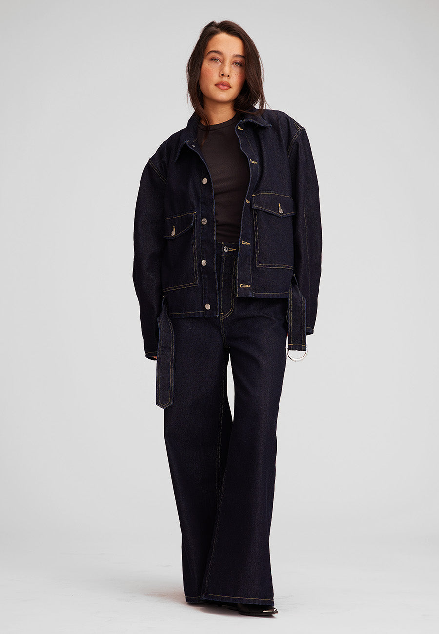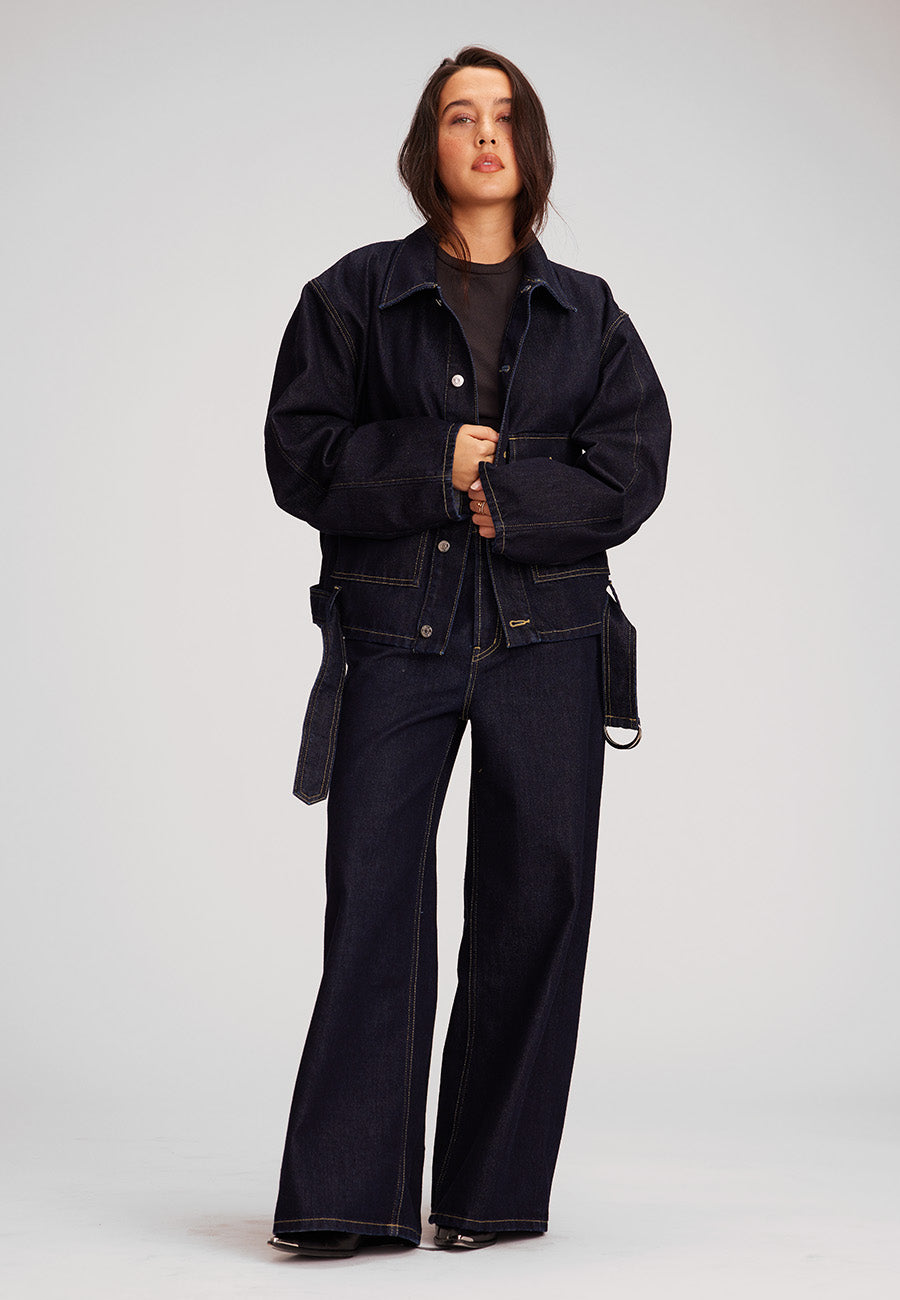 Nelson is a modern trucker with twists on classic detailing. Oversized patch pockets have side entry access and a detachable belt runs through a biker inspired back