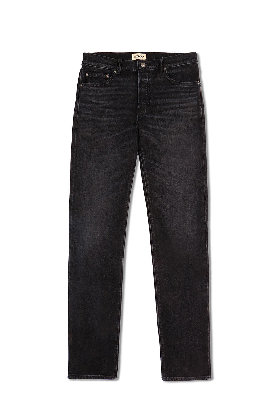 A classic straight leg jean featuring a classic straight leg jean featuring a mid rise waist, 5 pocket details and button fly. Its long inseam adds a slight stack at the ankle.